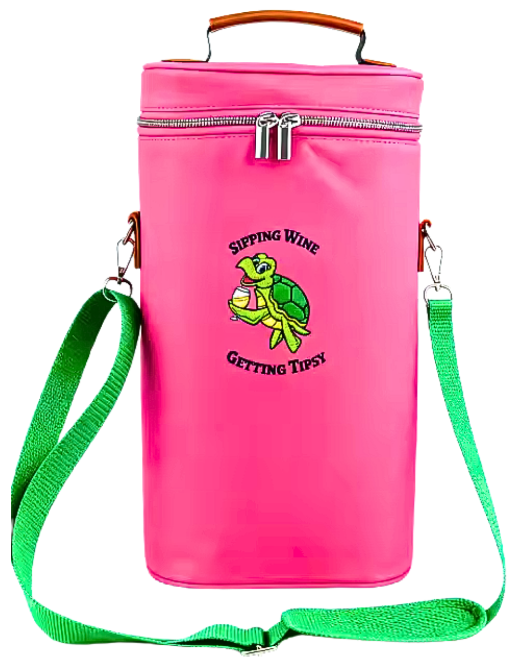 Carry your favorite vintages in style with this embroidered 2-bottle wine carrier featuring Sweet Shelly the Sea Turtle for a touch of sassy, ocean-inspired fun. Ideal for days at the beach, picnics by the bay or dining at your favorite BYOB. For those who enjoy sharing laughs while getting "tipsy" with friends.